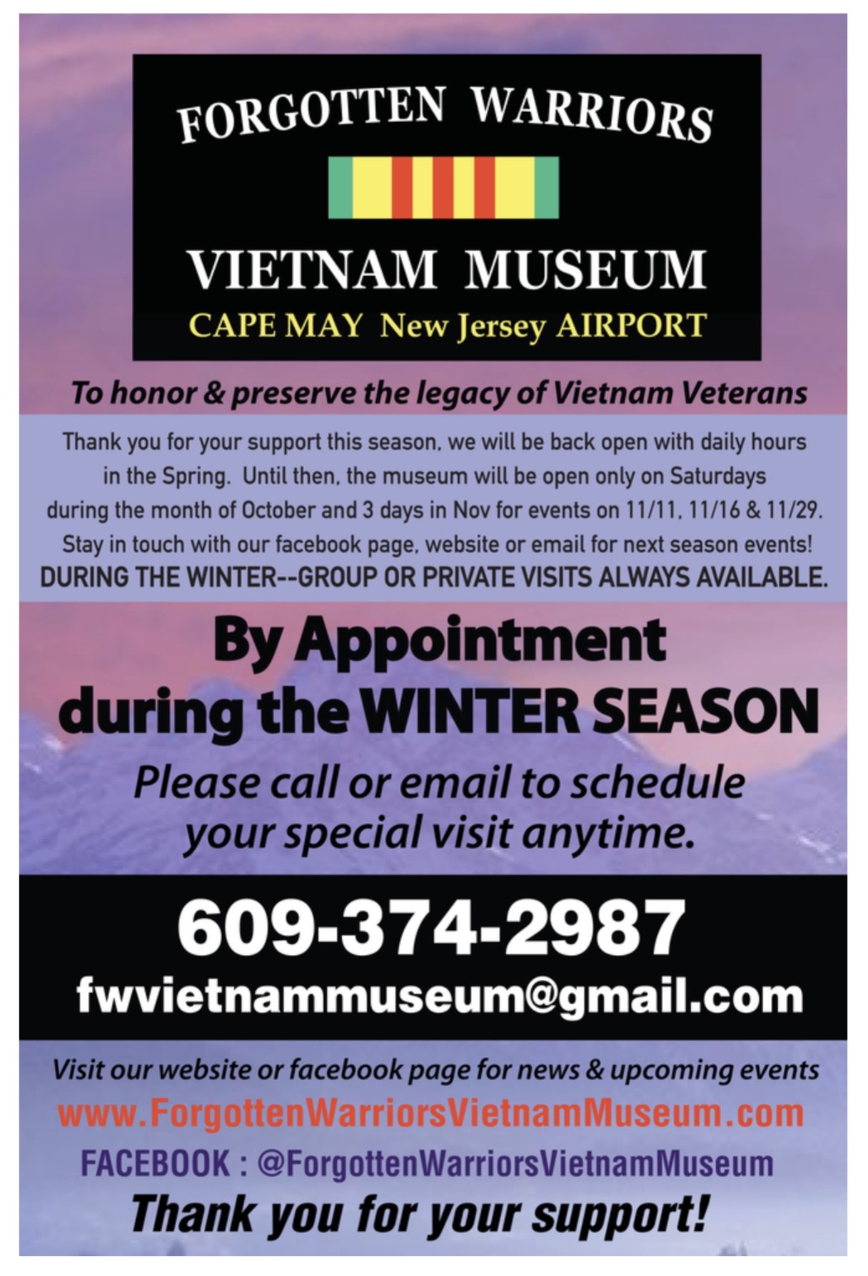 You'll find us at the Cape May airport. Get in touch with us now to find out more about the Vietnam veterans museum.